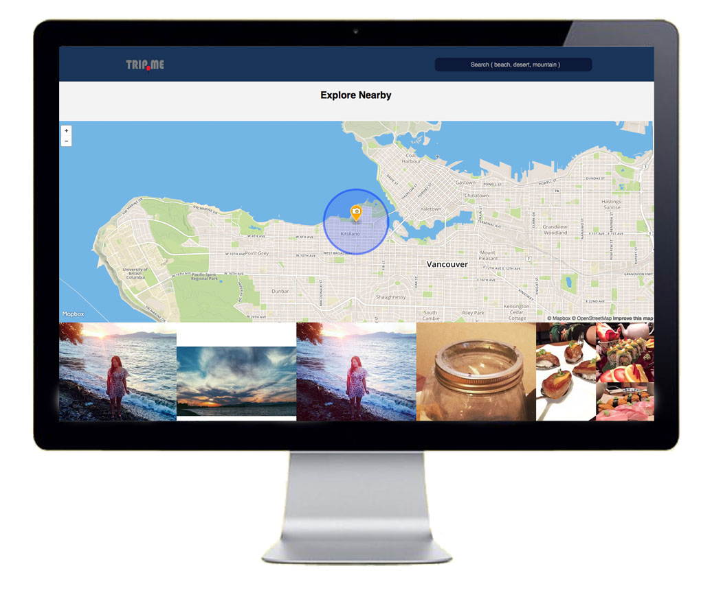 Users type in a keyword like, “sunset.” Trip.me reveals the most recent sunset posts and then the user clicks on the one they like best. This generates a map of where the photo was taken and then shows the most recent photos that have been taken in 5 km radius.